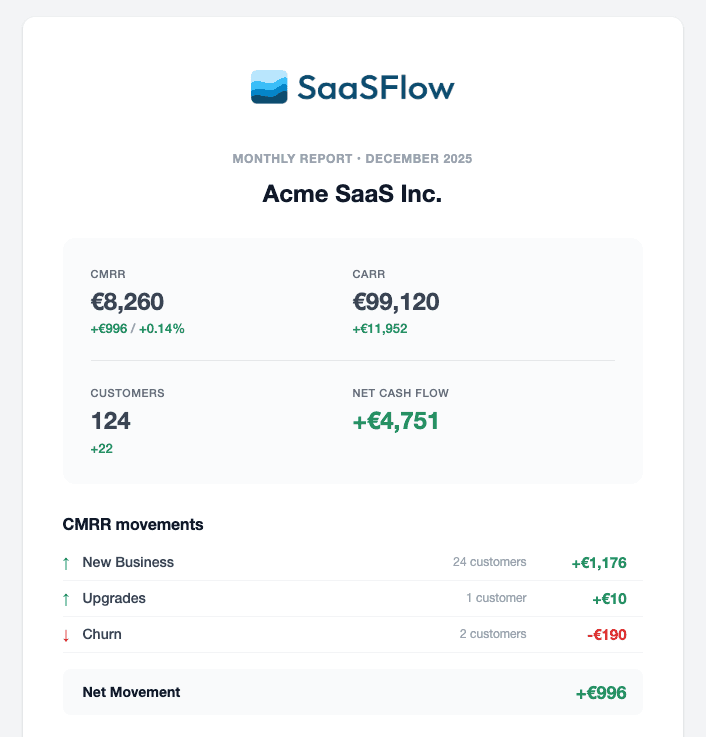 SaaSFlow now tracks billing intervals (monthly, yearly, etc.) for every subscription event. This information is automatically imported from Stripe and displayed in subscription event tables and the subscription detail modal.